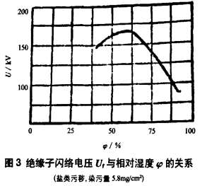 SMC電纜分支箱地處交通要道,背靠山坡,面向公路,塵土很大,絕緣子外表的積塵較多,在污層受潮時。其中所含可溶性鹽類及酸堿成分溶解于水中,使外表電導率驟增,走漏電流很多添加,大大下降閃絡電壓。一般說來,絕緣子的污閃電壓隨其污染程度的添加而下降。污染嚴峻時,跟著污染程度持續添加,污閃電壓的下降已很緩慢,但這時污閃電壓常常現已低于作業電壓了。枯燥污穢的電阻較大,它并不下降絕緣子的閃絡電壓,一般當空氣相對濕度小于50%~70%時,沿面閃絡電壓不會下降;高于這數值時,跟著濕度添加,閃絡電壓敏捷下降,如圖3所示。實際運轉中,絕緣子污閃事端都產生在霧、露、陰雨綿綿等高濕度的氣候.因為在這種條件下、積塵中水深性的鹽類溶解,使污層成為了半導體,大大添加走漏,下降閃絡電壓。本次事端正值當地千載難逢的大雨期間,而開關柜柜體的密封較差,柜內相對濕度已達90%以上,開關柜的操作組織組織嚴峻腐蝕,以至于徹底不能正常操作,由臟污沿面放電的進程的討論可知,污層的電阻越大,走漏電流越小,放電開展越困難,閃絡電壓也相應提高。在同樣污染和濕潤條件下,介質外表形狀、兩極間的沿面最短間隔即走漏間隔是影響外表電阻和閃絡電壓的重要因素。走漏間隔添加,污閃電壓也添加。不同成都的污穢狀況對線路及變電站絕緣的影響程度是不同的,因而應根據不同的污移狀況,采取相應的絕緣規范確保電網安全運轉"。現在, 我們用走漏比距來估量臟污條件下絕緣子的耐污功能。因為我局所轄電網為渝中區,被定為三級污區,按變電站設備考慮泄瀾比距應大于4cm/MkV。